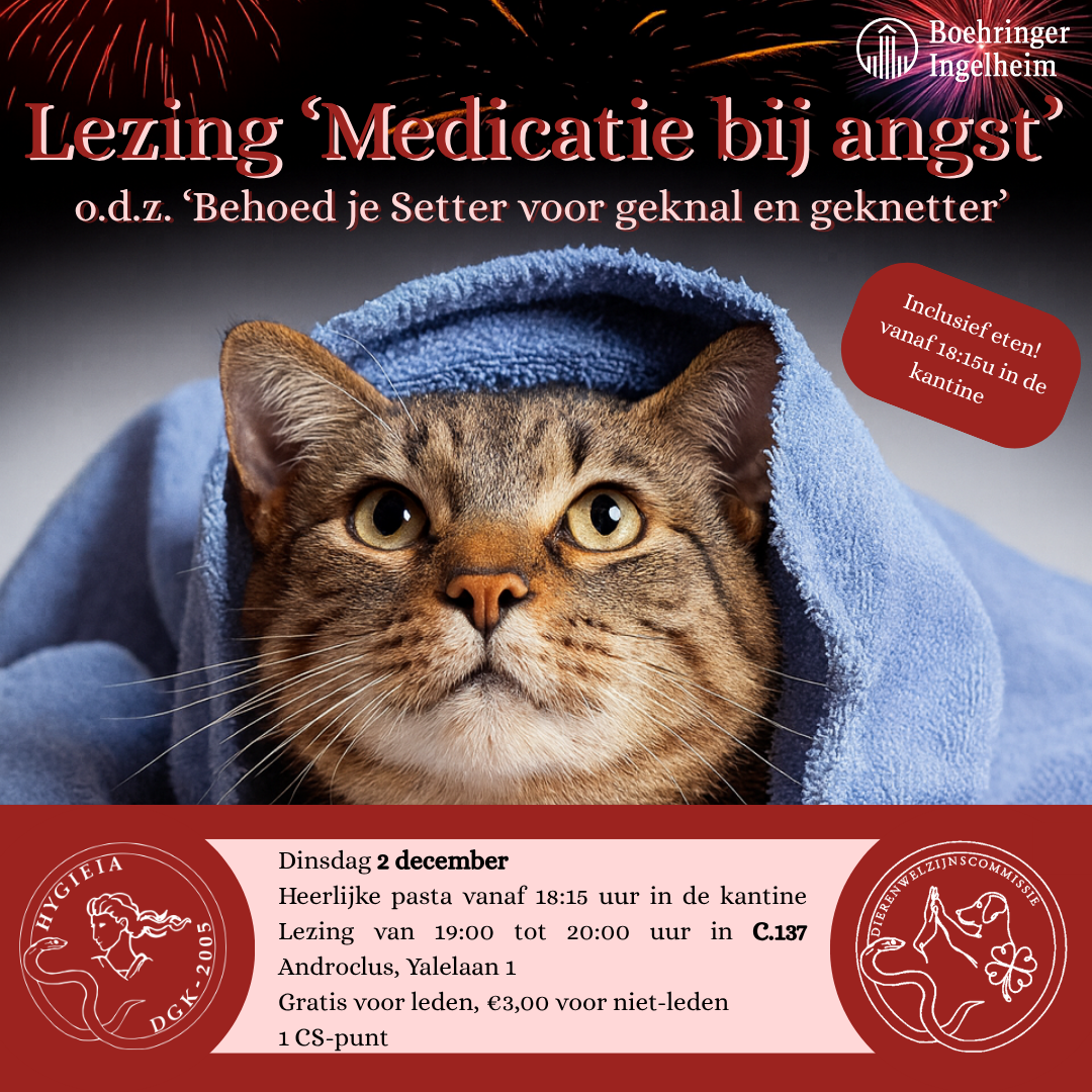 De feestdagen komen dichter en dichterbij!! Wij mensen kijken hier natuurlijk reikhalzend naar uit, maar onze lieve huisdieren zijn hier niet altijd even enthousiast over. Het lawaai dat met vuurwerk samengaat brengt vele huisdieren heel veel stress. Gelukkig kunnen wij ze hierbij helpen als (toekomstig) dierenartsen!