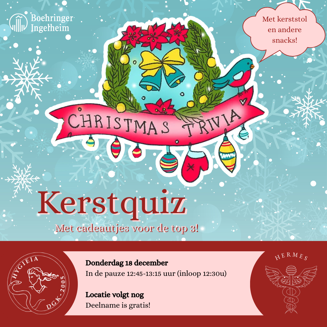 Trommel je vrienden op en ga de strijd met ze aan! Wie weet bereiken jullie de podiumplekken. Voor de top 3 zijn er leuke cadeautjes, dus mis het niet en geef je hier op voor de enige echte Hygieia Kerstquiz!